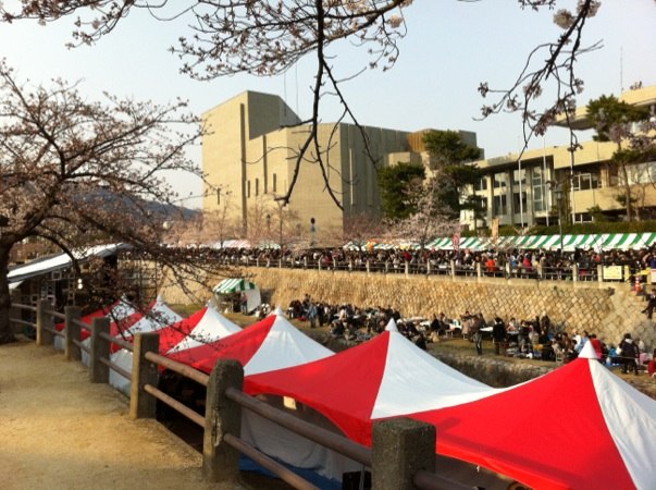 芦屋川の桜並木に特設ステージを設けてライブをやってました。