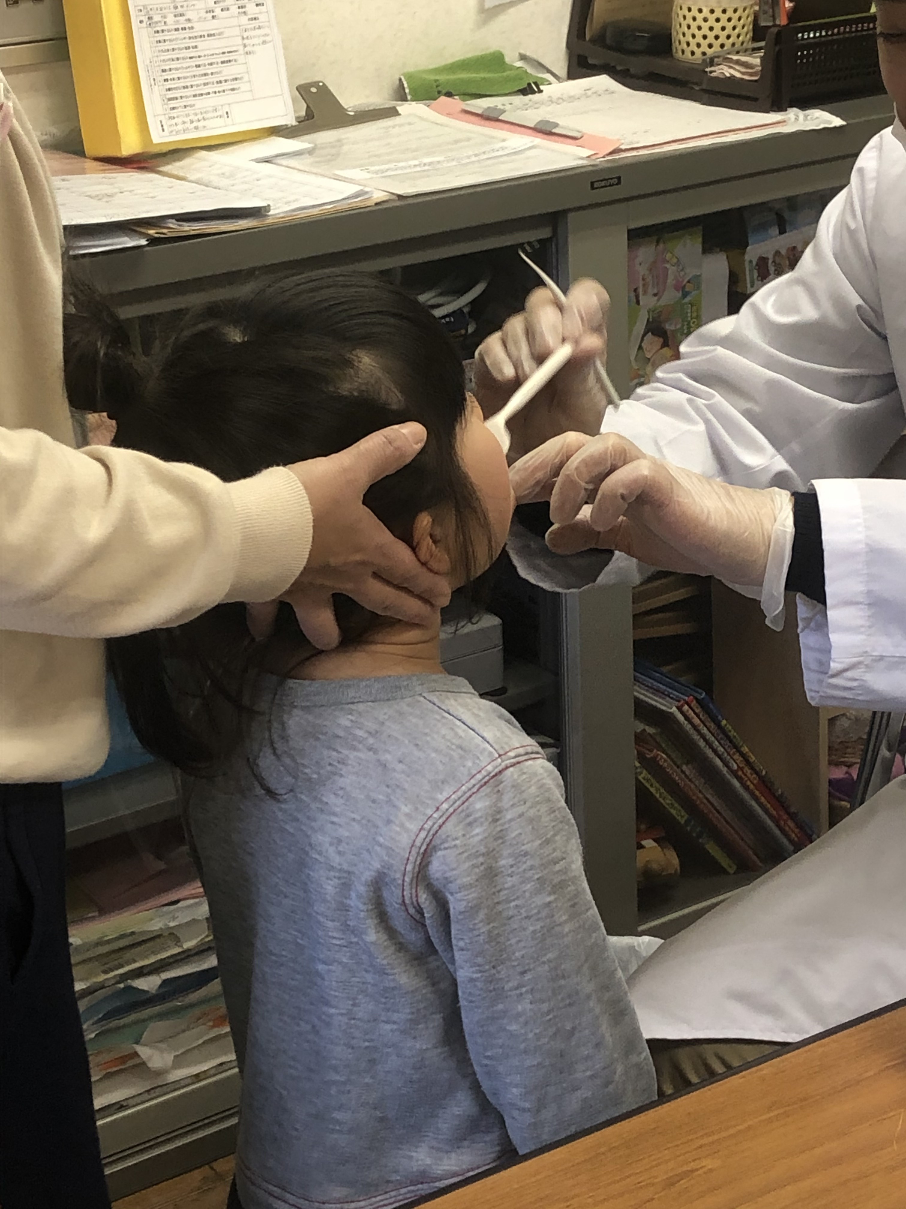 園長先生曰く、老朽化で改修だそうです。前回もいたお子さんで外国籍のお子さんが今回も検診にきました。